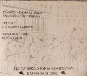 Σας παρουσιάζουμε το νέο μας δισκογραφικό κατόρθωμα. Πρόκειται για το μουσικό έπος που συνθέσαμε με την ευκαιρία της συμπλήρωσης του 10ου έτους από την ίδρυση του Καρναβαλικού Κομιτάτου Πάτρας.
